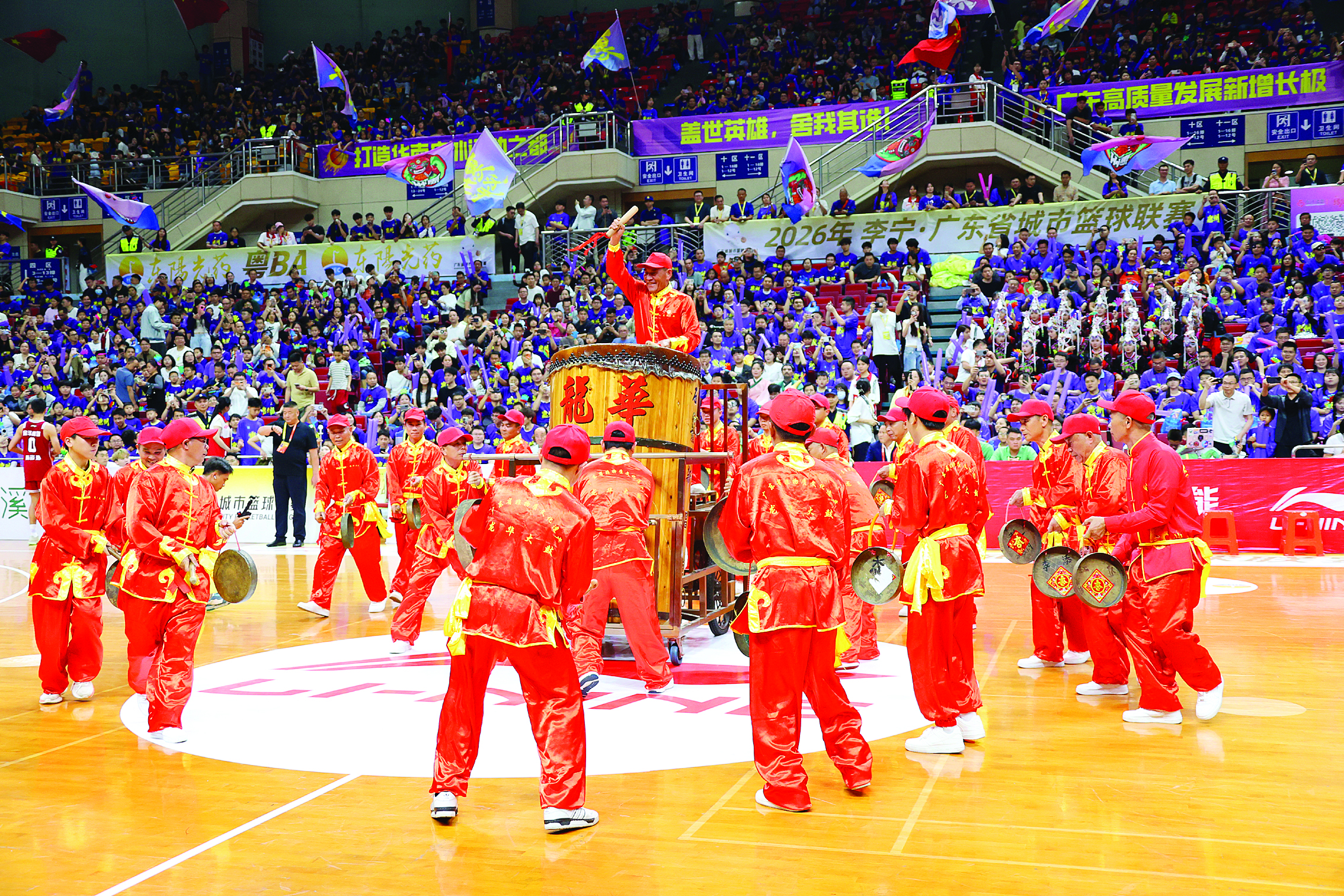 龍華大鼓首先登場,為雙方球隊加油助威,更展現(xiàn)惠州民風(fēng)剛健的一面;葜萆w子獅穿插其中,舞出精氣神,它的形象還成為惠州隊的隊徽,傳遞“蓋世英雄,舍我其誰”的理念,并喊出“嶺東雄郡,敢拼惠贏”的口號,為球隊和球賽增色不少。這是惠州攜國風(fēng)設(shè)計“征戰(zhàn)”粵BA,推動中式運動美學(xué)風(fēng)潮的大膽嘗試。
