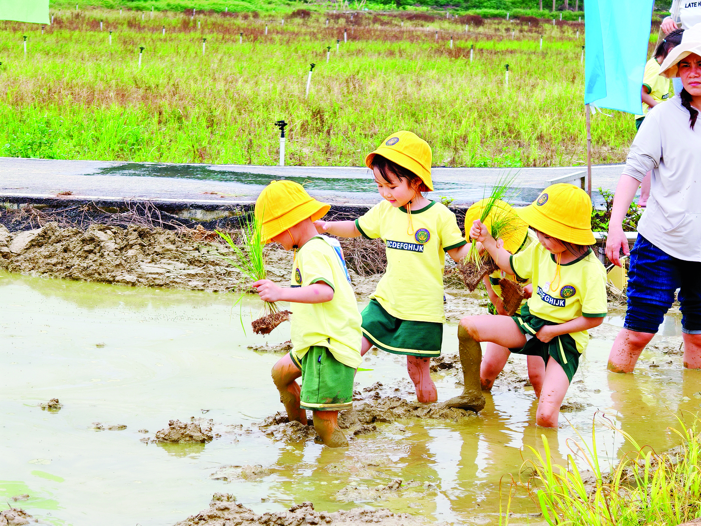 孩子們走進稻田體驗插秧和農(nóng)耕文化;葜輺|江圖片社供圖