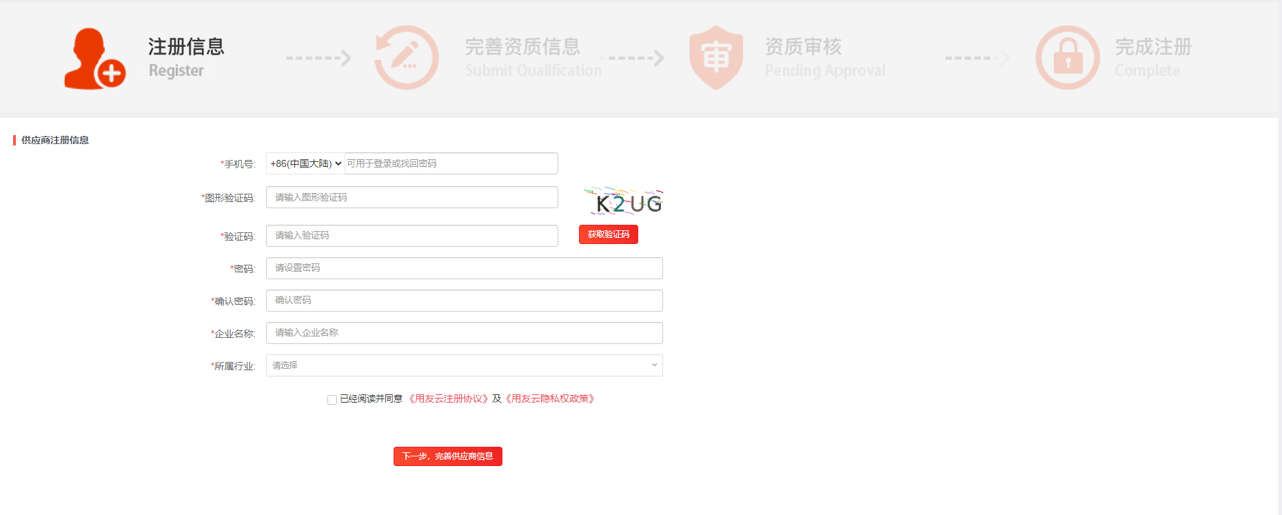 供應商網上自主注冊申請。