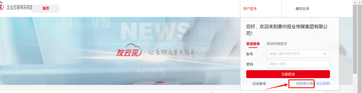 2、點(diǎn)擊用戶登錄,點(diǎn)擊供應(yīng)商注冊(cè) 。