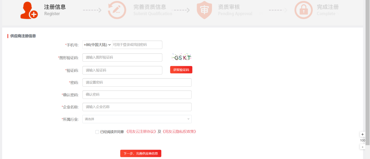 供應(yīng)商網(wǎng)上自主注冊(cè)申請(qǐng)。