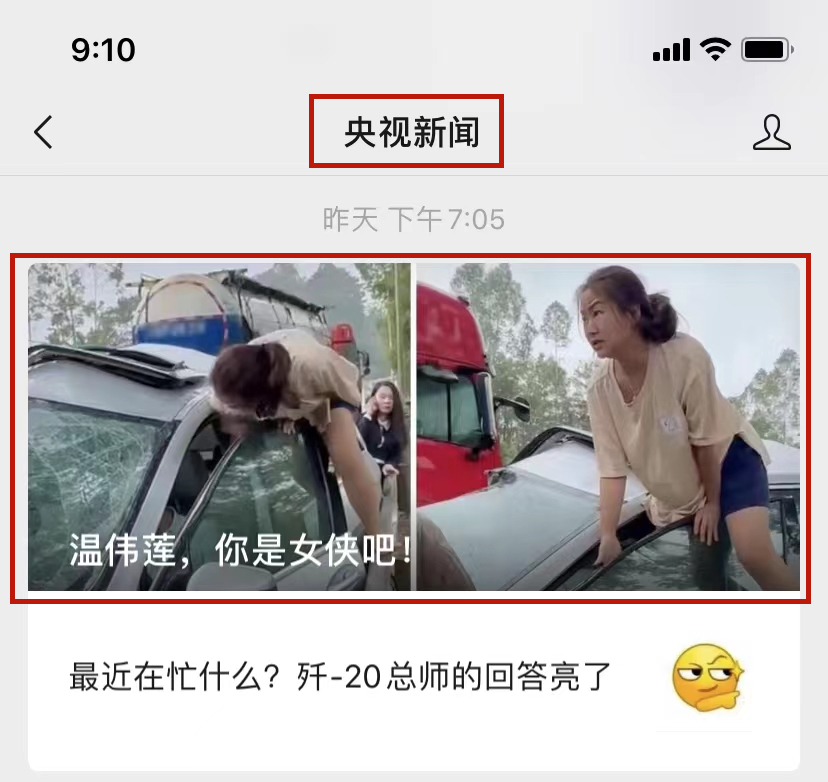 11月9日19點(diǎn)05分,央視新聞微信公眾號(hào)推出了《溫偉蓮,你是女俠吧! 》。