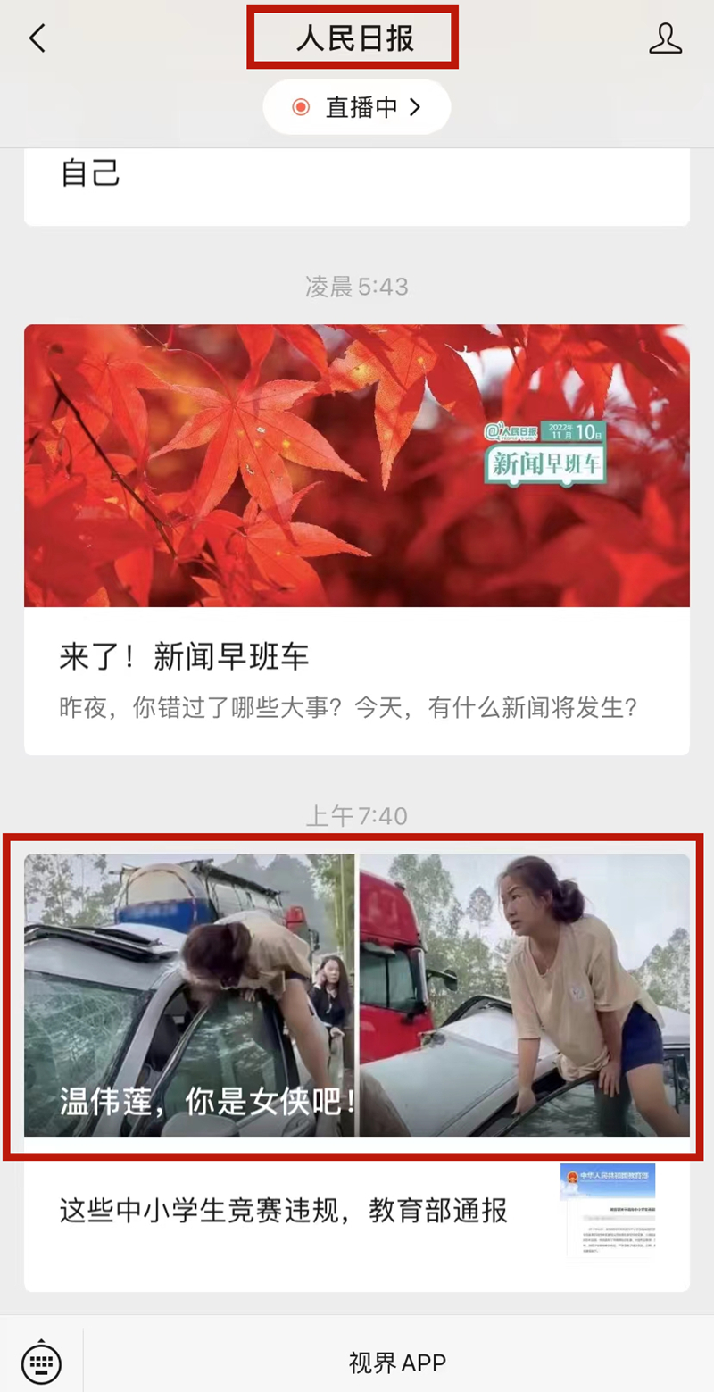 11月10日上午7點(diǎn)40分,人民日?qǐng)?bào)微信公眾號(hào)推出了《溫偉蓮,你是女俠吧! 》
