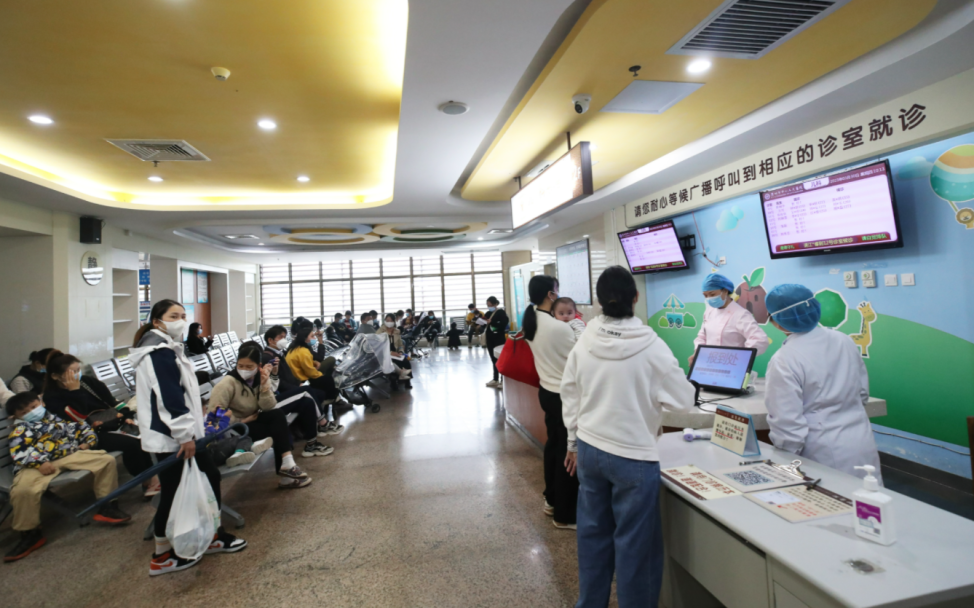 近日,記者在市中心人民醫(yī)院看到,兒科診區(qū)候診患者很多,家長(zhǎng)們帶著孩子來(lái)就診,普遍反映孩子有發(fā)熱、咳嗽等癥狀。