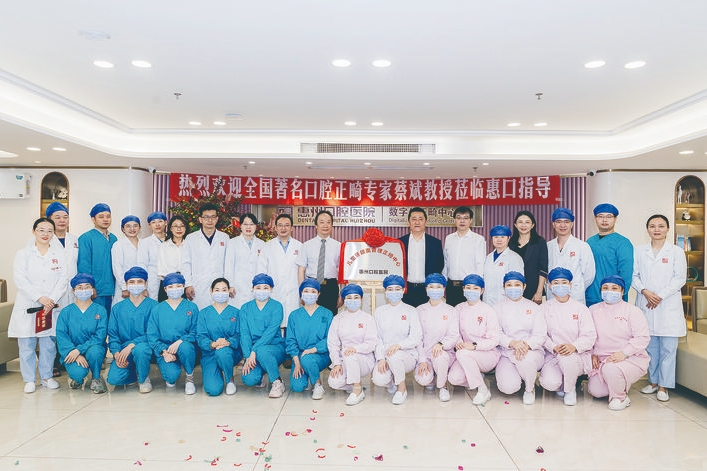 兒童牙頜面管理正畸中心揭牌,參加活動的嘉賓和醫(yī)護人員合影留念。 惠州口腔醫(yī)院供圖
