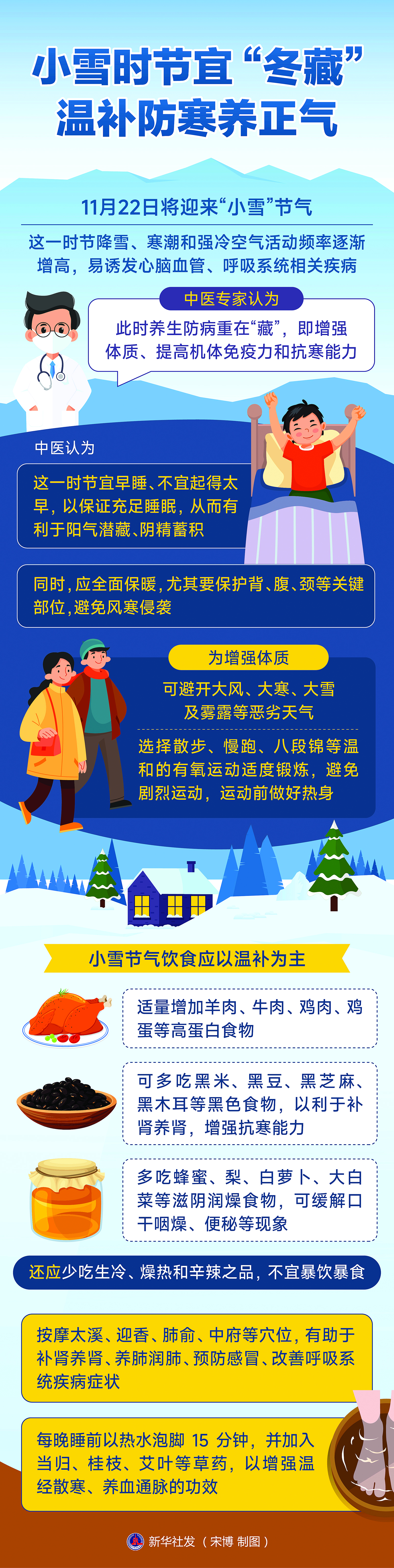 “自然界有‘春生、夏長、秋收、冬藏’的節(jié)律變化,入冬后人體要避免陽氣的損害,要注重‘潛藏’。”廣東省中醫(yī)院主任醫(yī)師楊志敏在發(fā)布會上表示,要保持充足睡眠,不要持續(xù)熬夜;要防范陽氣外泄,做好保暖,特別是頭、頸、腳等部位的保暖;運動時不要大汗淋漓,微微出汗即可;在陽光充足的時段曬太陽,補充陽氣。