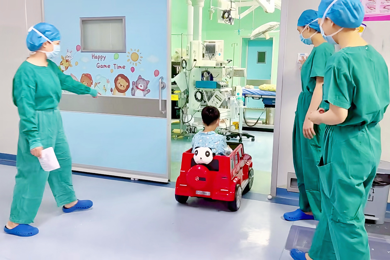 就醫(yī)需要安靜的環(huán)境,由于婦幼保健院的特殊性,少不了出現(xiàn)兒童的哭喊聲,孩子做手術(shù)哭鬧也大大增加了家長(zhǎng)的擔(dān)憂。為此,市第一婦幼保健院打造“兒童無(wú)哭聲手術(shù)室”,讓患者可以在手術(shù)室等候區(qū)的游戲區(qū)玩耍,甚至可以開(kāi)著兒童電動(dòng)車從術(shù)前準(zhǔn)備區(qū)進(jìn)入手術(shù)室。這些暖心的小舉措,給患兒足夠的術(shù)前心理緩沖時(shí)間,能有效緩解患兒術(shù)前緊張焦慮情緒,保證患兒安全、舒適,讓手術(shù)變得更有溫度。