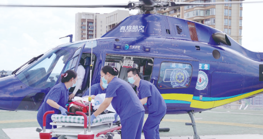 在急救創(chuàng)傷中心樓頂,還有一個(gè)24小時(shí)直升機(jī)停機(jī)坪,連接著一部可以直達(dá)搶救室的電梯,這是為患者打通的另一條生命通道。目前,依托硬件配備的“硬核武器”和軟件設(shè)施的“最強(qiáng)大腦”,該院構(gòu)建了涵蓋院前急救、途中診斷、院內(nèi)搶救、院外聯(lián)動(dòng)的陸空一體化救治體系。