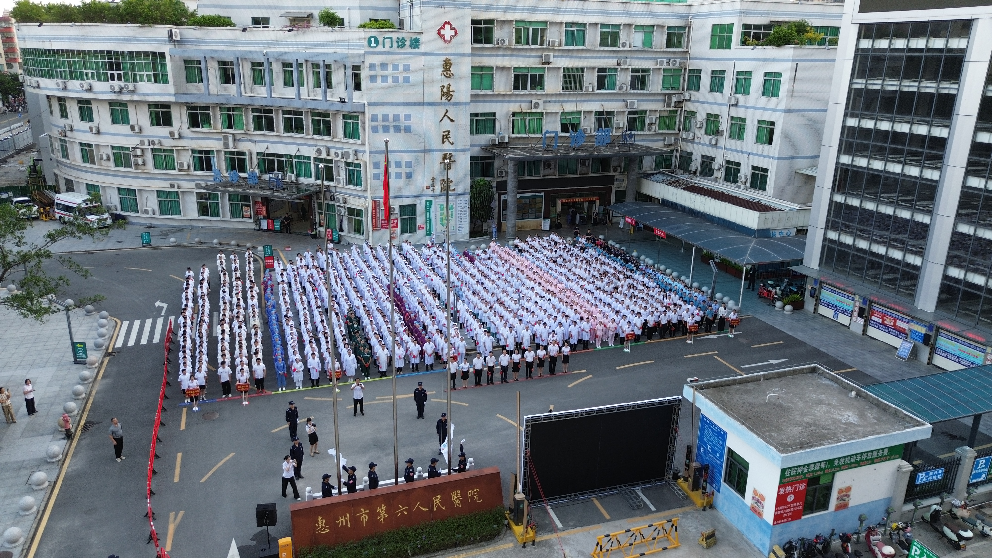 惠州市第六人民醫(yī)院以一場莊嚴(yán)的升旗儀式慶祝建院76周年;葜萑?qǐng)?bào)記者許文昌 通訊員郭金璇 攝