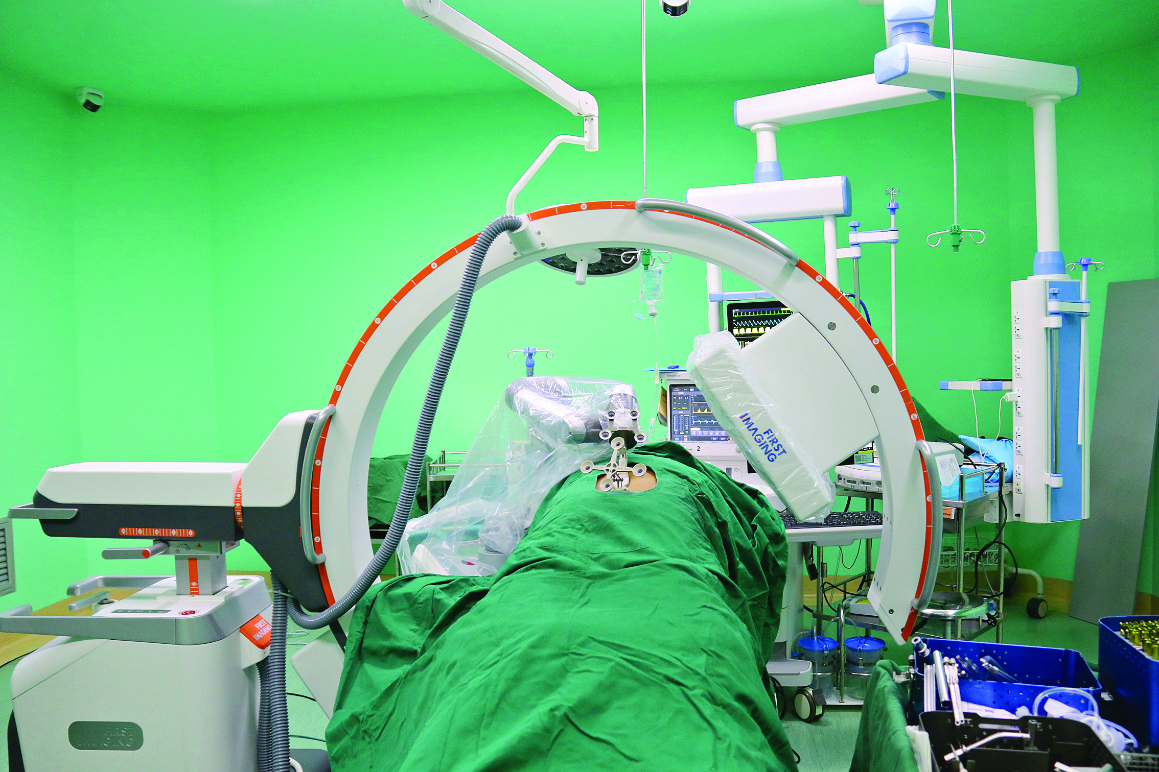 “有了機器人的輔助,醫(yī)生便可輕松完成螺釘?shù)木珳?zhǔn)、安全植入,而不再是植入鋼板,患者的創(chuàng)口小了,并發(fā)癥也少了!奔怪鶆(chuàng)傷科主任伍見鋒介紹,天璣骨科機器人,堪稱醫(yī)生實施手術(shù)的“第三只眼”,是能夠開展四肢、骨盆骨折以及脊柱全節(jié)段(頸椎、胸椎、腰椎、骶椎)手術(shù)的骨科機器人,精準(zhǔn)度達到亞毫米級。