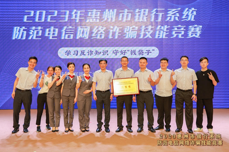 定向反詐宣傳,提高全民反詐意識(shí);葜莘中幸灰载炛龊梅婪峨娦啪W(wǎng)絡(luò)詐騙工作,積極開展宣教進(jìn)企業(yè)、進(jìn)社區(qū)、進(jìn)農(nóng)村、進(jìn)工廠、進(jìn)機(jī)關(guān)、進(jìn)校園“六進(jìn)”活動(dòng),結(jié)合網(wǎng)點(diǎn)陣地+線上媒體廣泛開展反詐宣傳,營(yíng)造“全民反詐”的濃厚氛圍。組織全行員工開展防范電信網(wǎng)絡(luò)詐騙技能競(jìng)賽, 5月底,在惠州市銀行系統(tǒng)防范電信網(wǎng)絡(luò)詐騙技能競(jìng)賽中榮獲“團(tuán)體三等獎(jiǎng)”。
