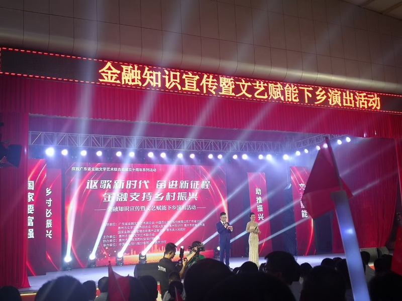 為充分發(fā)揮金融服務(wù)鄉(xiāng)村振興的主力軍作用,進(jìn)一步傳播金融能量,廣發(fā)銀行惠州分行依托鄉(xiāng)鎮(zhèn)網(wǎng)點(diǎn)和駐村服務(wù)點(diǎn),聯(lián)合惠州市金融文學(xué)藝術(shù)聯(lián)合會(huì)主辦的“謳歌新時(shí)代,奮進(jìn)新征程,金融支持鄉(xiāng)村振興”——金融知識(shí)宣傳暨文藝賦能下鄉(xiāng)演出活動(dòng),深入農(nóng)村,走進(jìn)村鎮(zhèn),開展金融知識(shí)宣傳。