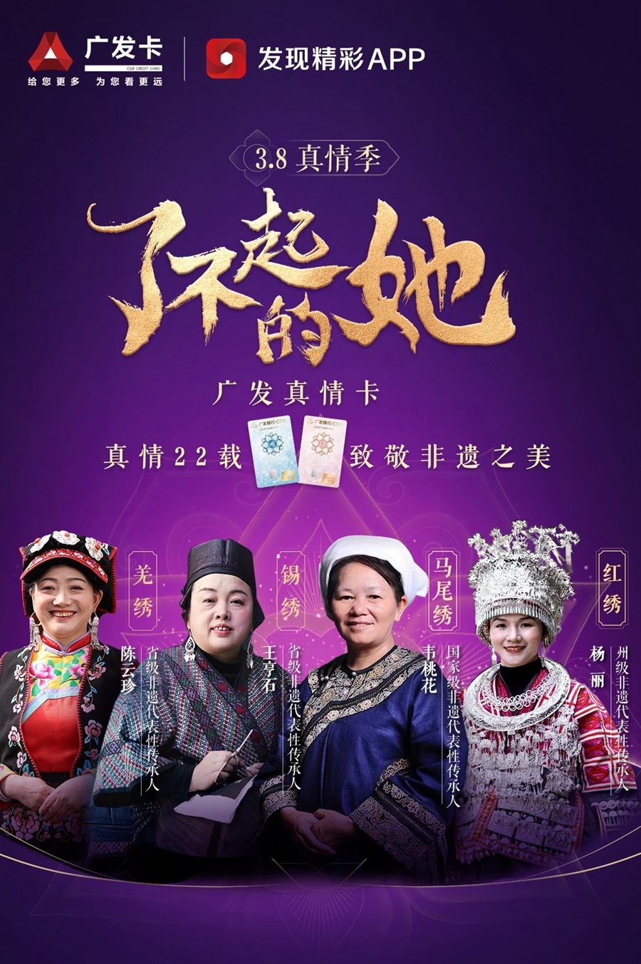 作為國(guó)內(nèi)首張女性專屬信用卡,廣發(fā)真情卡專注陪伴女性成長(zhǎng)22年,一直致力于發(fā)現(xiàn)、看見、傳播更多的“她力量”,幫助更多的中國(guó)女性追夢(mèng)逐夢(mèng)圓夢(mèng)。3月8日是“國(guó)際勞動(dòng)?jì)D女節(jié)”,廣發(fā)真情卡攜手中國(guó)婦女發(fā)展基金會(huì)“天才媽媽”公益項(xiàng)目,聚焦于非遺的匠心獨(dú)運(yùn),著眼于民族錦繡中蘊(yùn)含的東方美,以真情致敬非遺之美,通過講述非遺傳承人故事,致敬每一位了不起的她。