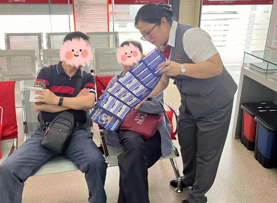 營業(yè)室主任見羅大爺仍未有警惕心理,為避免資金遭受損失,故意以單據(jù)填寫不規(guī)范,要求其家人前來網(wǎng)點協(xié)助填寫。羅大爺因迫切匯款,立即致電其女婿前來網(wǎng)點協(xié)助。家人來到網(wǎng)點后,營業(yè)室主任對羅大爺及其家人進(jìn)行反詐知識科普,通過多起案例現(xiàn)身說法,并在羅大爺家人的配合下,最終說服老人不再匯款。