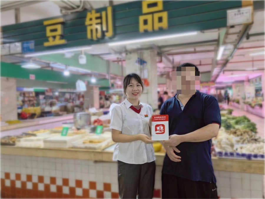 活動中,廣發(fā)銀行惠州東平支行工作人員首先以“客戶”的身份進(jìn)入市場進(jìn)行實(shí)地調(diào)查。通過在多家商戶用現(xiàn)金購買小額產(chǎn)品,觀察現(xiàn)金支付渠道的暢通情況。調(diào)查結(jié)果顯示,商販們都能正常收取現(xiàn)金,一位菜攤商戶表示:“我們不會拒收現(xiàn)金的,雖然現(xiàn)在手機(jī)支付也很方便,但這邊菜市場老人家比較多,都是鄰里街坊,我們都會有現(xiàn)金找零,方便大家!