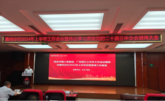 7月29日,廣發(fā)銀行惠州分行召開2024年上半年工作會議暨傳達學(xué)習(xí)貫徹黨的二十屆三中全會精神大會。分行班子成員、全體中層干部、全體支行公司/零售主任、部門資深主管級以上人員參會。