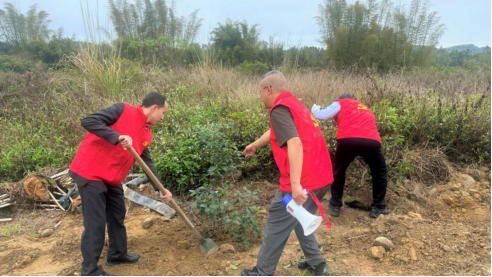 黨群攜手添新綠,共繪鄉(xiāng)村畫卷。在駐村干部的指導下,各黨支部迅速認領“責任樹苗區(qū)”,黨員們分工協(xié)作、默契配合:揮鍬挖土、扶苗培土、提水澆灌……經(jīng)過近兩小時的奮戰(zhàn),近百株新栽的樹苗迎風挺立,為雙金村增添了一片生機盎然的“黨員先鋒林”。隨后,黨員志愿者們在樹苗上系上許愿絲帶,寄托著對綠色未來、生態(tài)宜居的美好期許,并與樹苗合影留念,記錄這一充滿希望的瞬間。植樹間隙,黨員們與當?shù)卮迕裼H切交流,傾聽村民對生態(tài)保護和鄉(xiāng)村振興的意見與建議,深入了解基層需求。