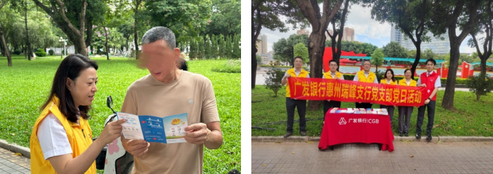 為深入貫徹落實中央金融工作會議精神,進一步提升公眾金融素養(yǎng)和風(fēng)險防范意識,廣發(fā)銀行惠州瑞峰支行黨支部聯(lián)合群眾,于2025年6月11日在惠城區(qū)新時代廉潔文化公園開展了一場以“守護信用,金融為民”為主題的宣傳活動。本次活動結(jié)合“2025年普及金融知識萬里行”和“6.14征信記錄關(guān)愛日”兩項重點工作,內(nèi)容豐富、形式多樣,取得了良好的社會反響。