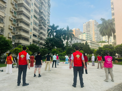 活動(dòng)現(xiàn)場(chǎng),廣發(fā)銀行志愿者與社區(qū)工作者、太極協(xié)會(huì)老師聯(lián)動(dòng),為老年居民講解八段錦的歷史淵源與健身功效,從動(dòng)作拆解到呼吸調(diào)整、身形矯正,細(xì)致指導(dǎo)每一個(gè)環(huán)節(jié) 。“動(dòng)作要隨節(jié)奏舒展,身心放松”,專業(yè)又通俗的教學(xué),讓居民快速掌握要領(lǐng),經(jīng)過練習(xí)后,多數(shù)老年居民已能跟隨音樂完成大半動(dòng)作,在互動(dòng)中傳遞健康理念。