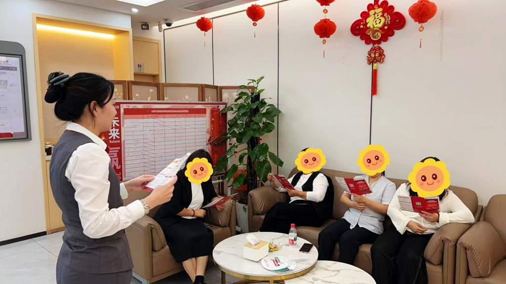 廣發(fā)銀行惠州演達(dá)路支行在營業(yè)廳堂內(nèi)開展金融知識(shí)普及微沙龍活動(dòng)。