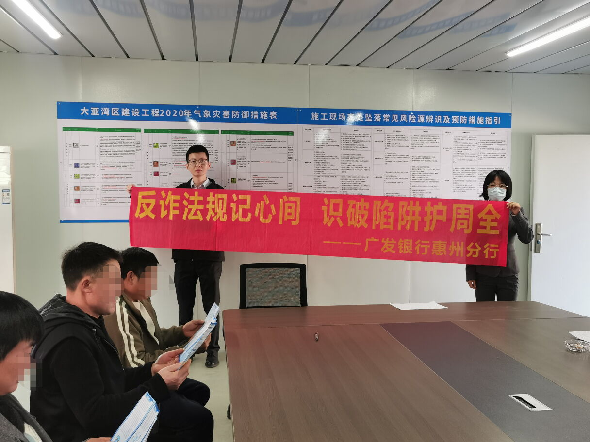 為筑牢建筑行業(yè)一線員工反詐防線,守護(hù)工友辛苦所得,近日,廣發(fā)銀行大亞灣支行走進(jìn)建筑公司為一線施工人員開展專屬反詐金融教育宣傳活動(dòng),把實(shí)用防騙知識(shí)送到工友身邊。