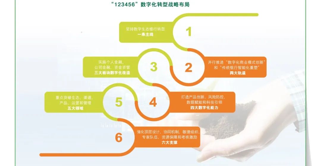 “風(fēng)控護(hù)行”離不開科技賦能。郵儲銀行將數(shù)字化轉(zhuǎn)型作為全行轉(zhuǎn)型發(fā)展的重點戰(zhàn)略舉措,探索符合自身特性的轉(zhuǎn)型方式,在探索中前進(jìn),在變革中發(fā)展,規(guī)劃了“123456”數(shù)字化轉(zhuǎn)型戰(zhàn)略布局,全力推動“數(shù)字生態(tài)銀行”建設(shè)。