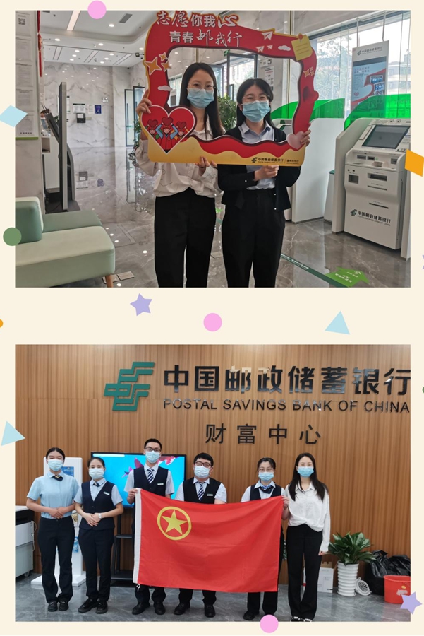 圖為:郵儲(chǔ)銀行惠州市分行營(yíng)業(yè)部團(tuán)員開展志愿服務(wù)