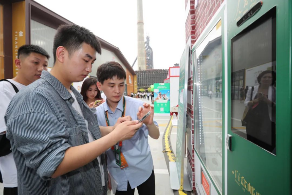 參觀者體驗郵儲銀行數(shù)幣大道“時光街區(qū)”
