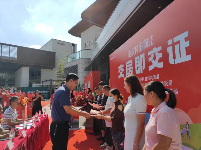 在該區(qū)舉行的“交房即發(fā)證”活動(dòng)上,文瀚花園近20戶業(yè)主現(xiàn)場(chǎng)登上舞臺(tái),從該區(qū)自然資源局不動(dòng)產(chǎn)登記中心負(fù)責(zé)人手中接過(guò)房屋的“不動(dòng)產(chǎn)權(quán)證”。