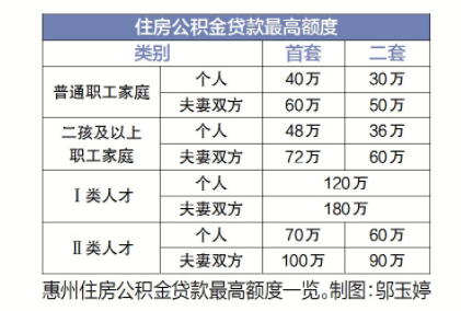 記者了解到,目前惠州住房公積金貸款,購(gòu)買首套房個(gè)人住房公積金最高貸款額度40萬元,夫妻雙方最高貸款額度60萬元;購(gòu)買二套房個(gè)人最高貸款額度30萬元,夫妻雙方最高貸款額度50萬元。生育二孩及以上的職工家庭購(gòu)買自住住房申請(qǐng)個(gè)人住房公積金貸款的,最高貸款額度在基礎(chǔ)上上浮20%。而人才使用住房公積金購(gòu)房,貸款最高額度為180萬元。