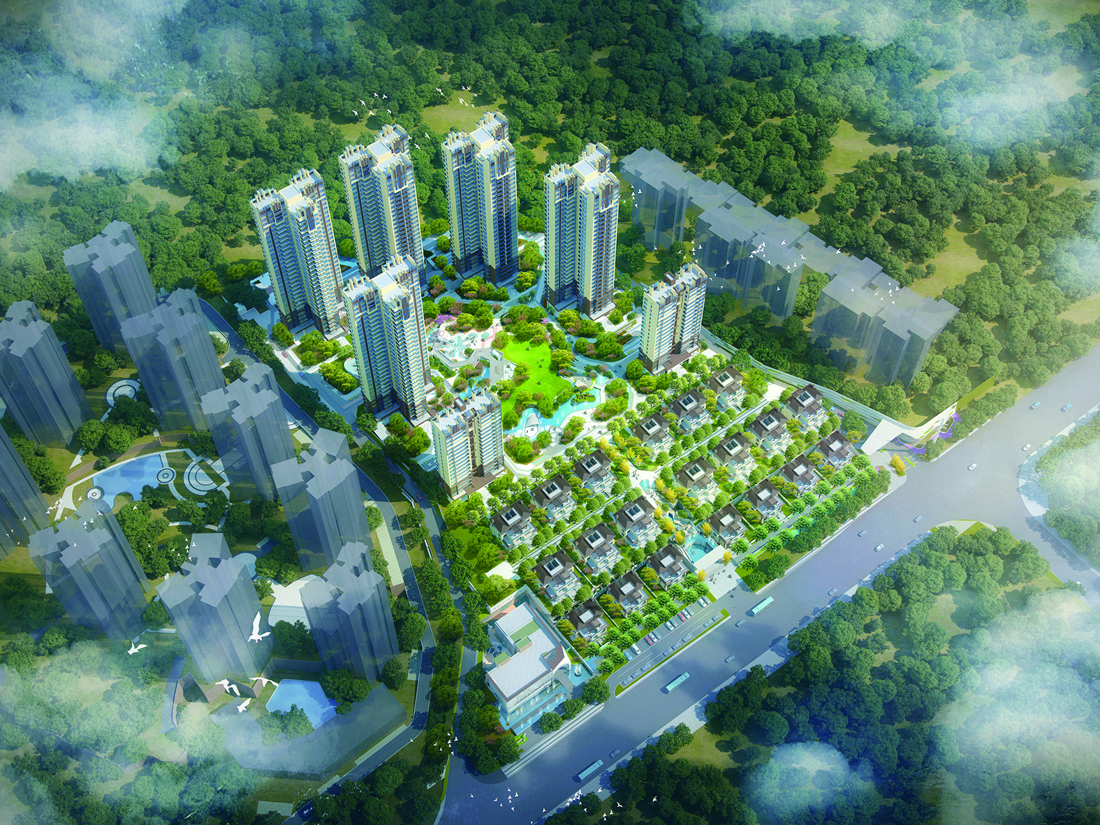 社區(qū)配套完善,環(huán)境雅致宜人,內(nèi)置一所幼兒園,并配備有星級標(biāo)準(zhǔn)游泳池、覆蓋全年齡段的兒童游樂設(shè)施以及約1.2萬㎡的特色風(fēng)情商業(yè)街,全方位滿足業(yè)主生活需求。項目傾力打造現(xiàn)代度假酒店風(fēng)格的美學(xué)園林,通過五重生態(tài)秘境設(shè)計,讓每一位業(yè)主在主城區(qū)內(nèi)也能享受到如詩如畫的山居度假體驗。