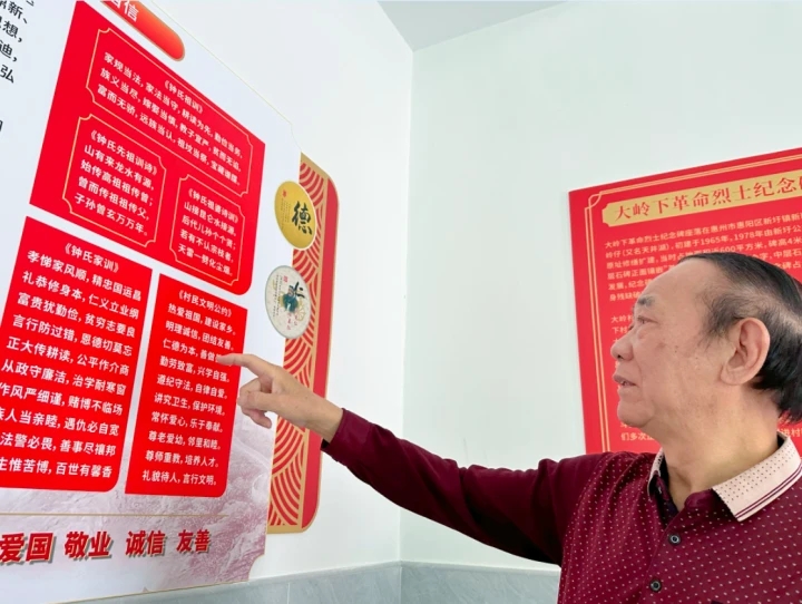 在社會各界和鄉(xiāng)賢的支持下,近兩年,鐘建環(huán)推動鐘氏后人及鄉(xiāng)親們在村里建成了大嶺下紅色文化活動中心,平時村民議事,節(jié)假日聚會都在這里,同時,該中心還成為展示紅色村莊的窗口。