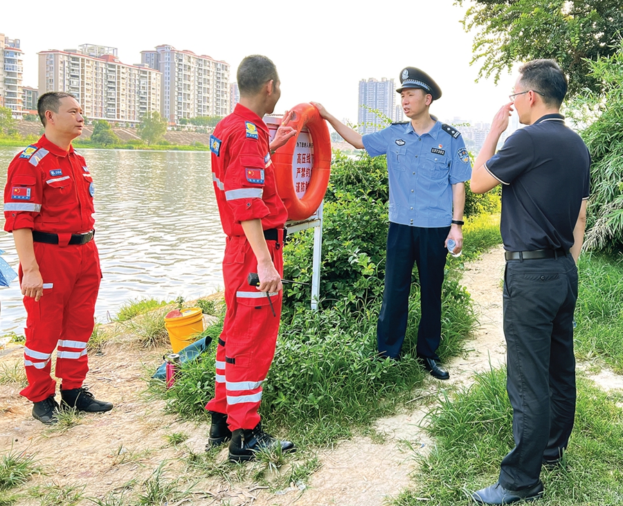 記者在東湖社區(qū)走訪發(fā)現(xiàn),市公安局情指中心黨支部的黨員民警與志愿者們一起走街串巷,深入社區(qū)群眾中派發(fā)宣傳單、開展宣教活動,為大家普及防詐反詐、防溺水知識,切實增強(qiáng)了居民們的安全防范意識!霸谛v活動中,有溺水情景模擬處置、急救教學(xué)等內(nèi)容,非常實用,也很有教育意義!
