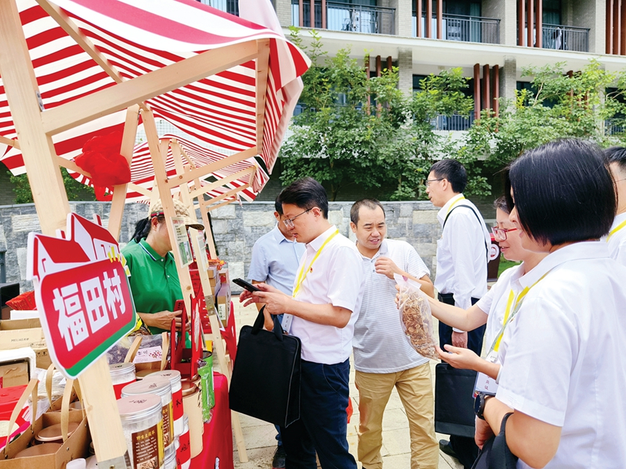 助農(nóng)幫扶集市吸引眾多學員。 惠州日報記者洪鵲兒 通訊員朱慧慧 攝