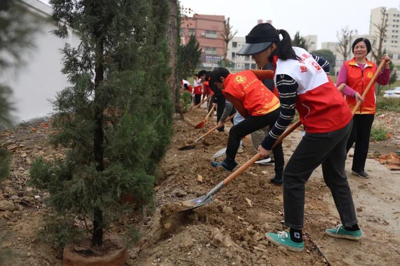 干群齊心協(xié)力添新綠。惠州日?qǐng)?bào)記者朱麗婷 通訊員園洲宣 攝