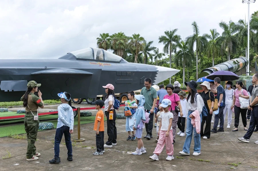 走進(jìn)潼湖軍墾基地,營院張貼的強(qiáng)軍標(biāo)語、國防教育圖片燃起了大家心中的熱火。在國防軍事科技展廳,實(shí)物、展板等充分展示了我國軍種類型、主戰(zhàn)武器裝備,黨的建軍歷史、發(fā)展歷史,航天技術(shù)的主要成就;在大型設(shè)備展區(qū),東風(fēng)21導(dǎo)彈、殲-20戰(zhàn)斗機(jī)、99A式主戰(zhàn)坦克等各類先進(jìn)武器裝備模型讓人目不暇接!皣仄鳌闭駣^人心,大家的民族自豪感和自信心油然而生。