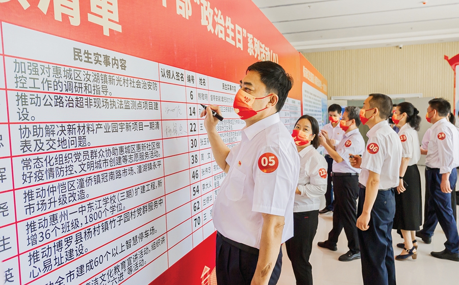 過好“政治生日”,牢記初心使命。一年來,惠州把黨員過“政治生日”作為提升黨內(nèi)政治生活質(zhì)量的重要舉措,在市級層面開展“擔當作為踐初心 砥礪奮進創(chuàng)一流”黨員領導干部“政治生日”系列活動,通過每人認領一件民生實事等系列舉措,把過“政治生日”與推動中心工作、解決實際問題結(jié)合起來,推動黨員干部以實際行動踐行初心使命。同時,全市各地各部門也積極組織黨員集體過“政治生日”,以重溫入黨誓詞、分享入黨初心故事、警示教育等形式,引導廣大黨員加強黨性修養(yǎng)、筑牢信仰之基、補足精神之鈣、把穩(wěn)思想之舵。