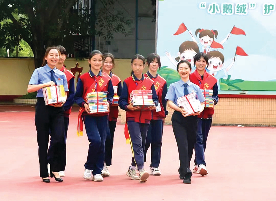 “小鵝絨”護“未”隊法治進鄉(xiāng)村巡講守護未成年人健康成長。