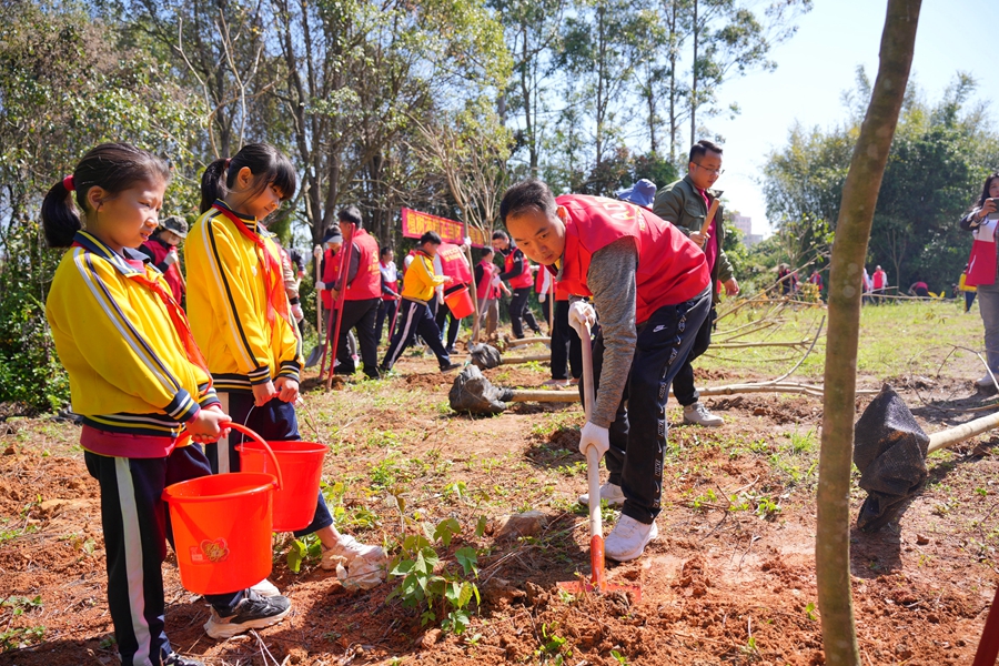 春來萬(wàn)物蘇,添綠正當(dāng)時(shí)。為深入貫徹落實(shí)習(xí)近平生態(tài)文明思想和省委、市委關(guān)于綠美生態(tài)建設(shè)的決策部署,3月12日,惠陽(yáng)區(qū)城投集團(tuán)黨委聯(lián)合惠州日?qǐng)?bào)社、中建科工集團(tuán)有限公司、農(nóng)發(fā)行惠州市惠陽(yáng)支行,依托黨建結(jié)對(duì)共建開展“植樹添綠正當(dāng)時(shí) 綠美惠陽(yáng)齊共建”植樹造林活動(dòng),在惠陽(yáng)區(qū)沙田鎮(zhèn)東澳村(省級(jí)擬培育典型村)共植“黨建共建林”;顒(dòng)累計(jì)完成栽種紫花風(fēng)鈴木、茶花共計(jì)300余棵,為加速繪就綠美惠陽(yáng)的精彩畫卷貢獻(xiàn)生態(tài)環(huán)保力量。