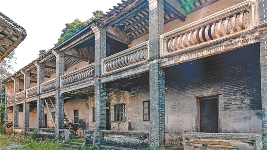 至今,新作塘還保留著較為完好的中共博羅第二任縣委機關駐地遺址。該遺址位于烏欖園村小組,是一棟兩層騎樓建筑,外觀頗為壯觀,內(nèi)部卻因年久失修有多處破損,部分墻體坍塌。據(jù)李藝威介紹,這一大樓距今已有200多年歷史,占地500平方米,是黨領導下的革命活動地點,新中國成立后一度作為中學、公社用地。