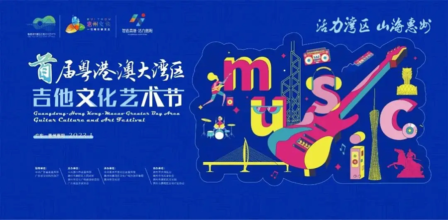 由中共廣東省委宣傳部、廣東省文化和旅游廳指導(dǎo),中共惠州市委宣傳部、惠州市惠陽區(qū)人民政府、惠州市文化廣電旅游體育局、廣東省音樂家協(xié)會(huì)聯(lián)合主辦,邀請(qǐng)國內(nèi)知名歌手?jǐn)y手粵港澳大灣區(qū)樂隊(duì)代表們傾情演繹的首屆粵港澳大灣區(qū)吉他文化藝術(shù)節(jié)暨第五屆惠陽吉他文化藝術(shù)節(jié),將于2023年1月13日19:30,在惠陽區(qū)半島文化體育公園隆重開幕!