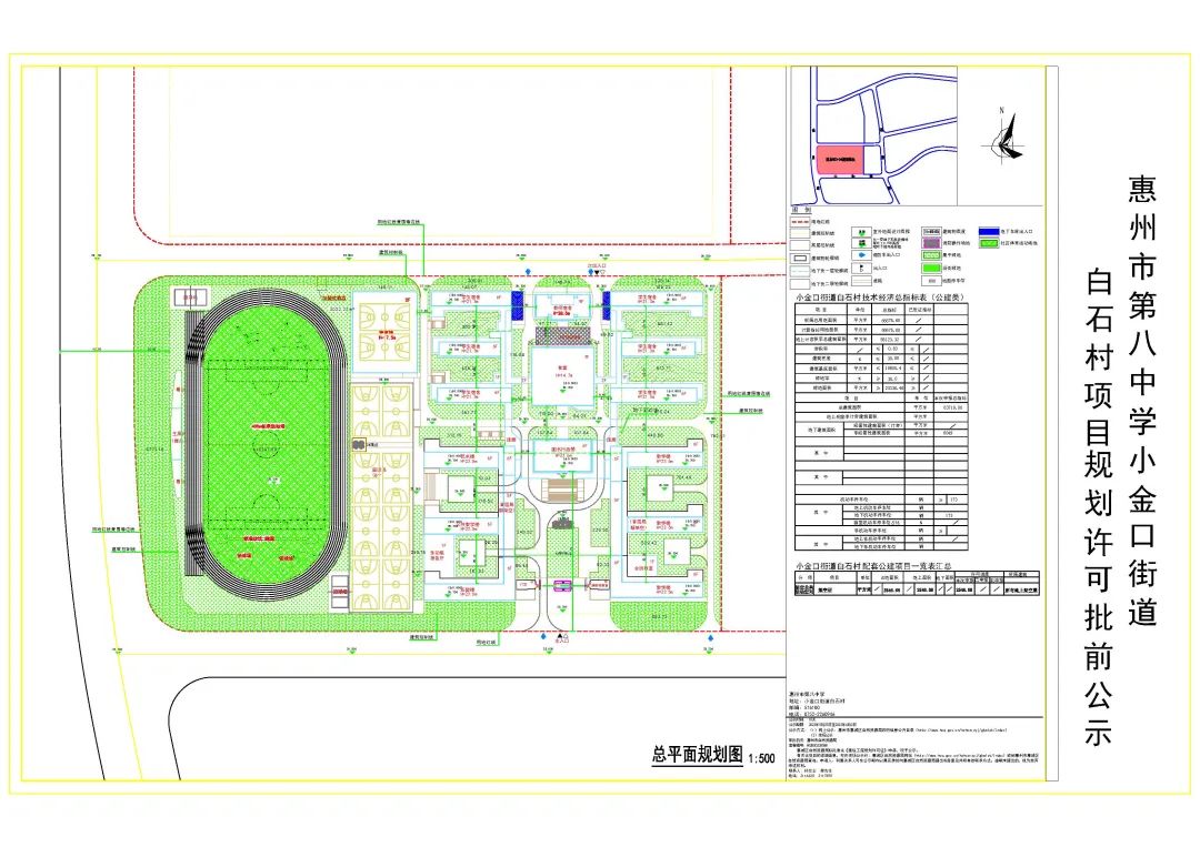 據(jù)惠州市惠城區(qū)自然資源局發(fā)布的《惠城區(qū)教育局(惠州市第八中學(xué))建設(shè)項目規(guī)劃許可批前公示》顯示,惠州市第八中學(xué)高中部項目位于小金口街道白石村。