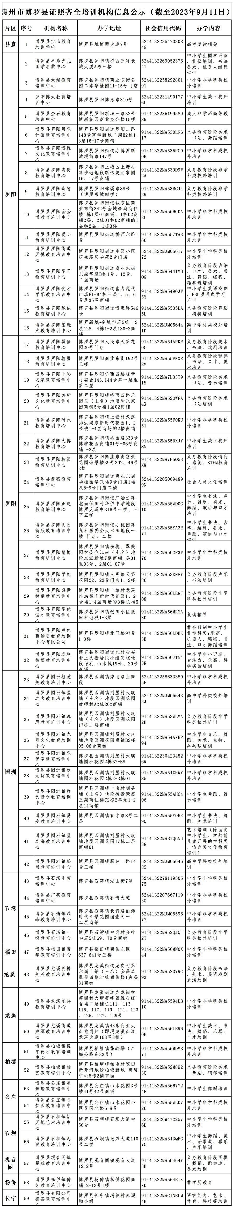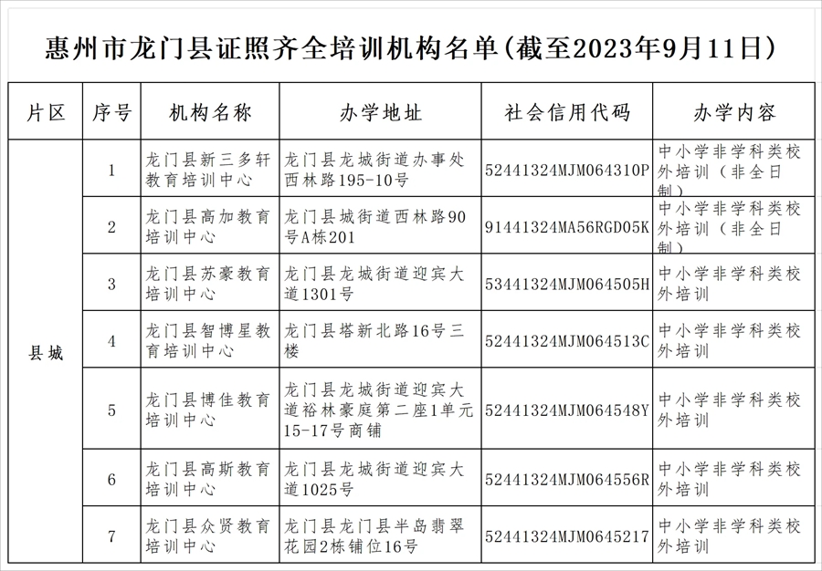 為進(jìn)一步鞏固我市“雙減”工作成果,方便廣大學(xué)生及家長查詢和選擇合法合規(guī)教育培訓(xùn)機(jī)構(gòu),9月18日,惠州市教育局發(fā)布《關(guān)于公布惠州市證照齊全培訓(xùn)機(jī)構(gòu)名單的公告》,公布我市由教育行政部門審批監(jiān)管的證照齊全培訓(xùn)機(jī)構(gòu)名單(截至2023年9月11日)。
