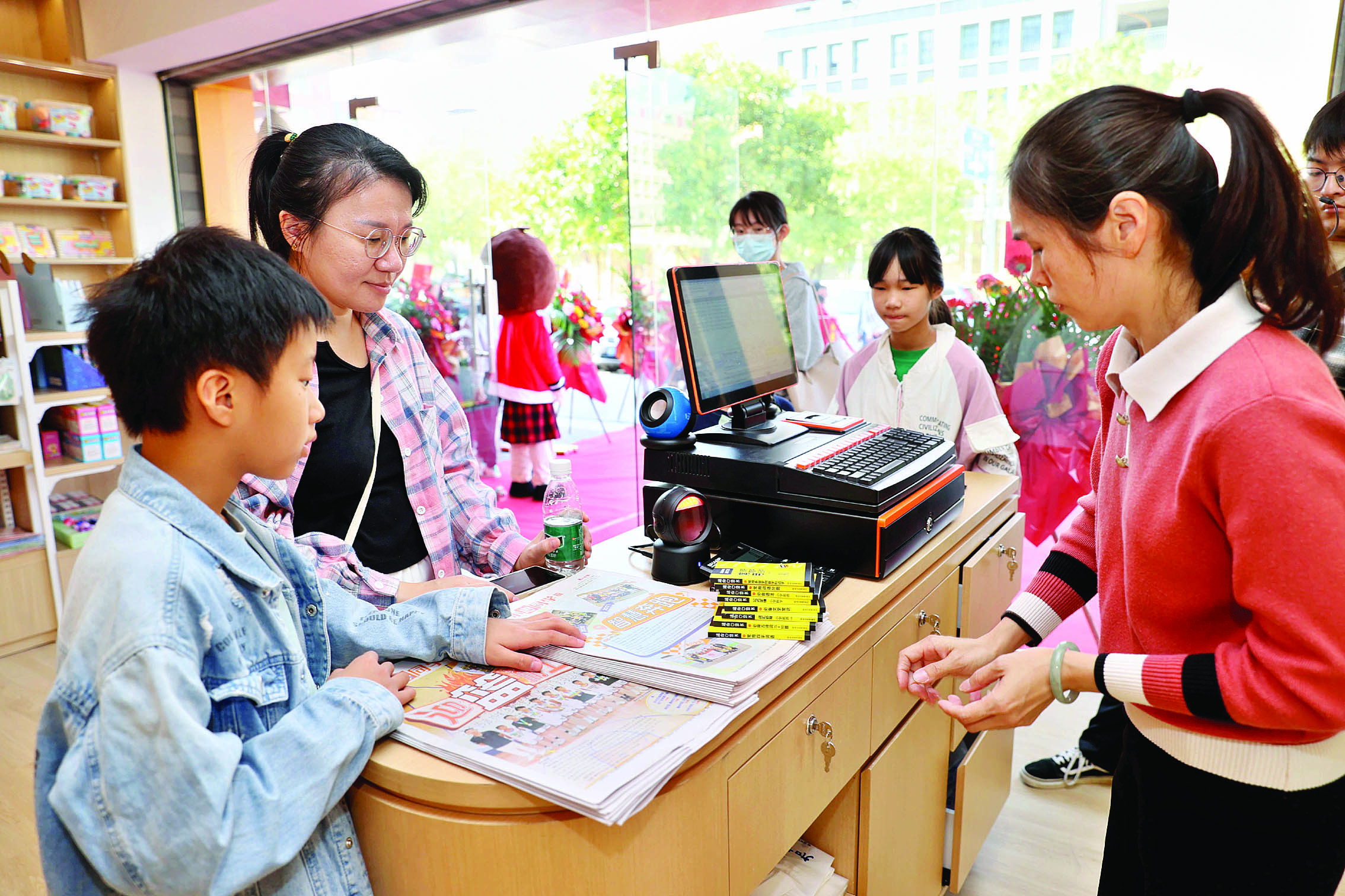 學(xué)生與家長(zhǎng)在小惠同學(xué)驛站采購學(xué)習(xí)用品;葜萑?qǐng)?bào)記者楊建業(yè) 攝