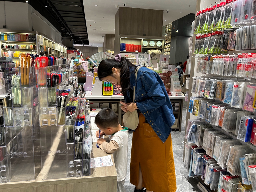 開學(xué)臨近,家長帶著孩子挑選新學(xué)期的文具。
