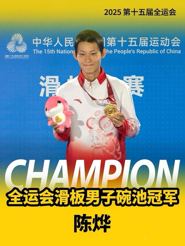 陳燁在2025年榮獲第十五屆全運(yùn)會滑板男子碗池冠軍。