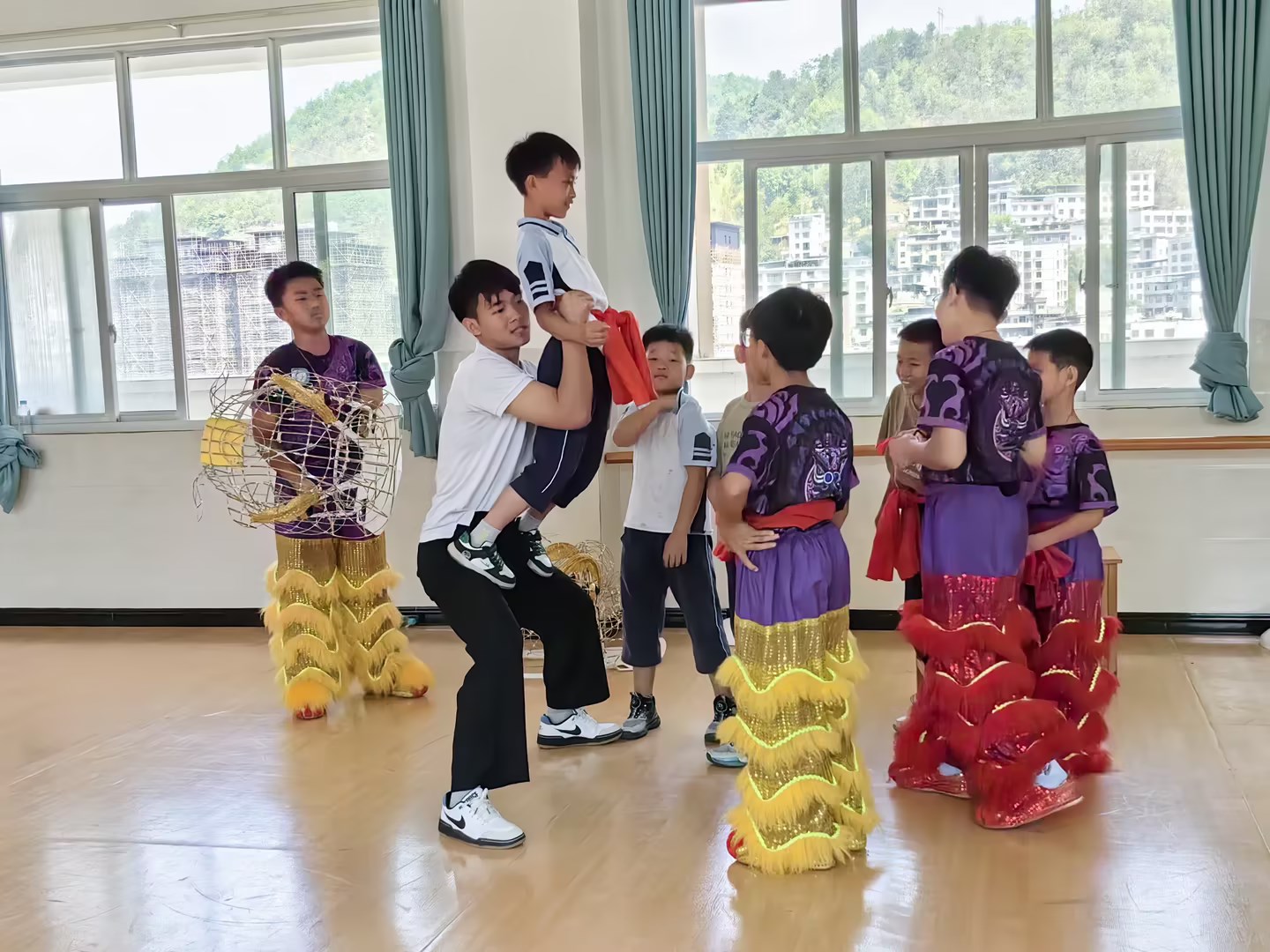 孩子的交流總是生動而真摯。云端畫展、英語作業(yè)互賞、元旦聯(lián)歡……兩地學(xué)子在屏幕上相遇,在心里相逢。2025年5月,學(xué)校醒獅社團師生親赴冊亨,帶去的不僅是獅頭鼓樂,南獅與北獅的文化交流,還有非遺與體育融合的實踐探索,更有一份關(guān)于成長的美好約定。