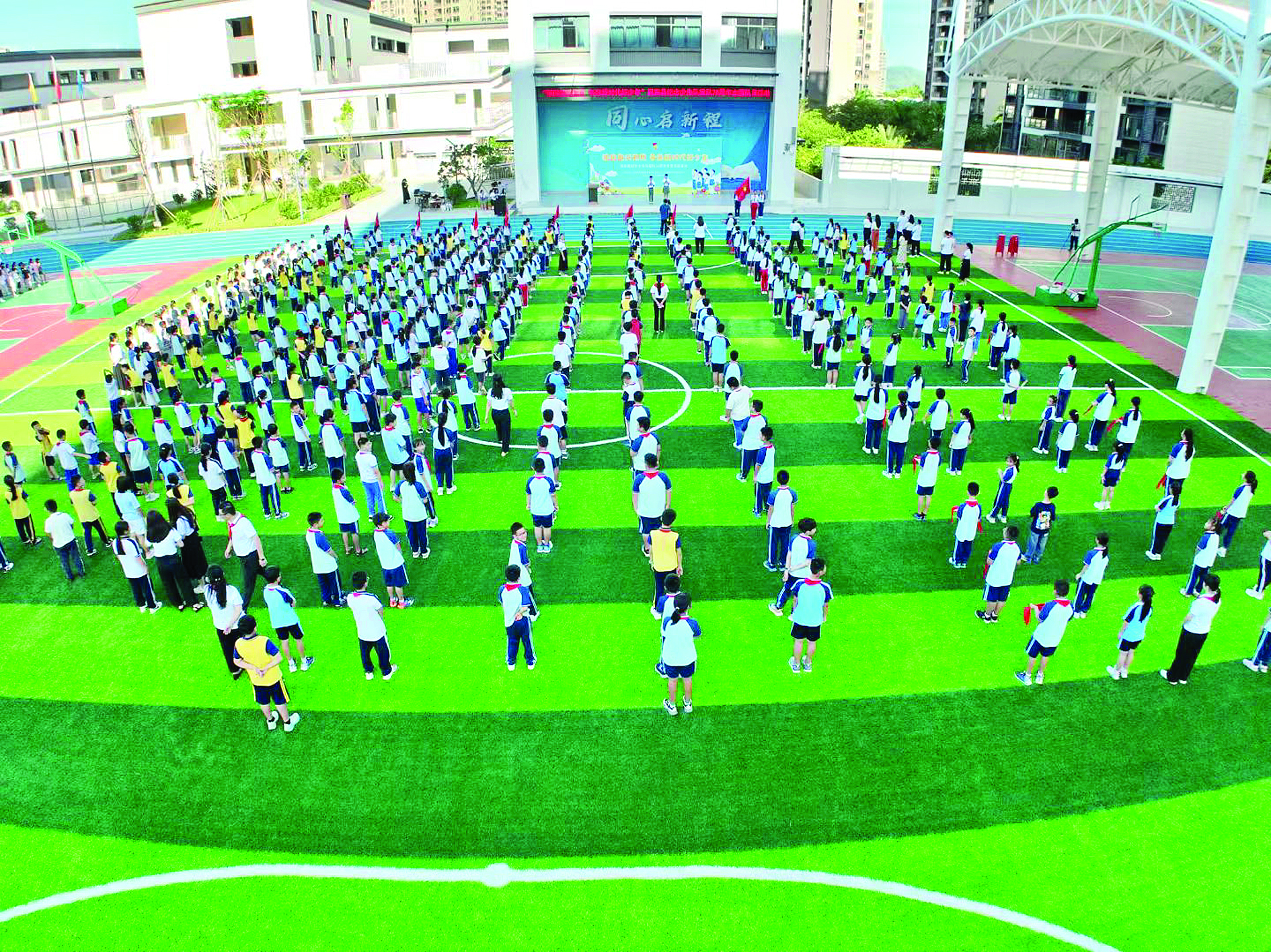 走進校園,最先映入眼簾的是五層復合式教學樓,像一本攤開的立體教科書。樓內,各類功能場室的配備尤為齊全,為“五育并舉”提供了堅實支撐,也讓區(qū)域教育硬件水平得到顯著提升。