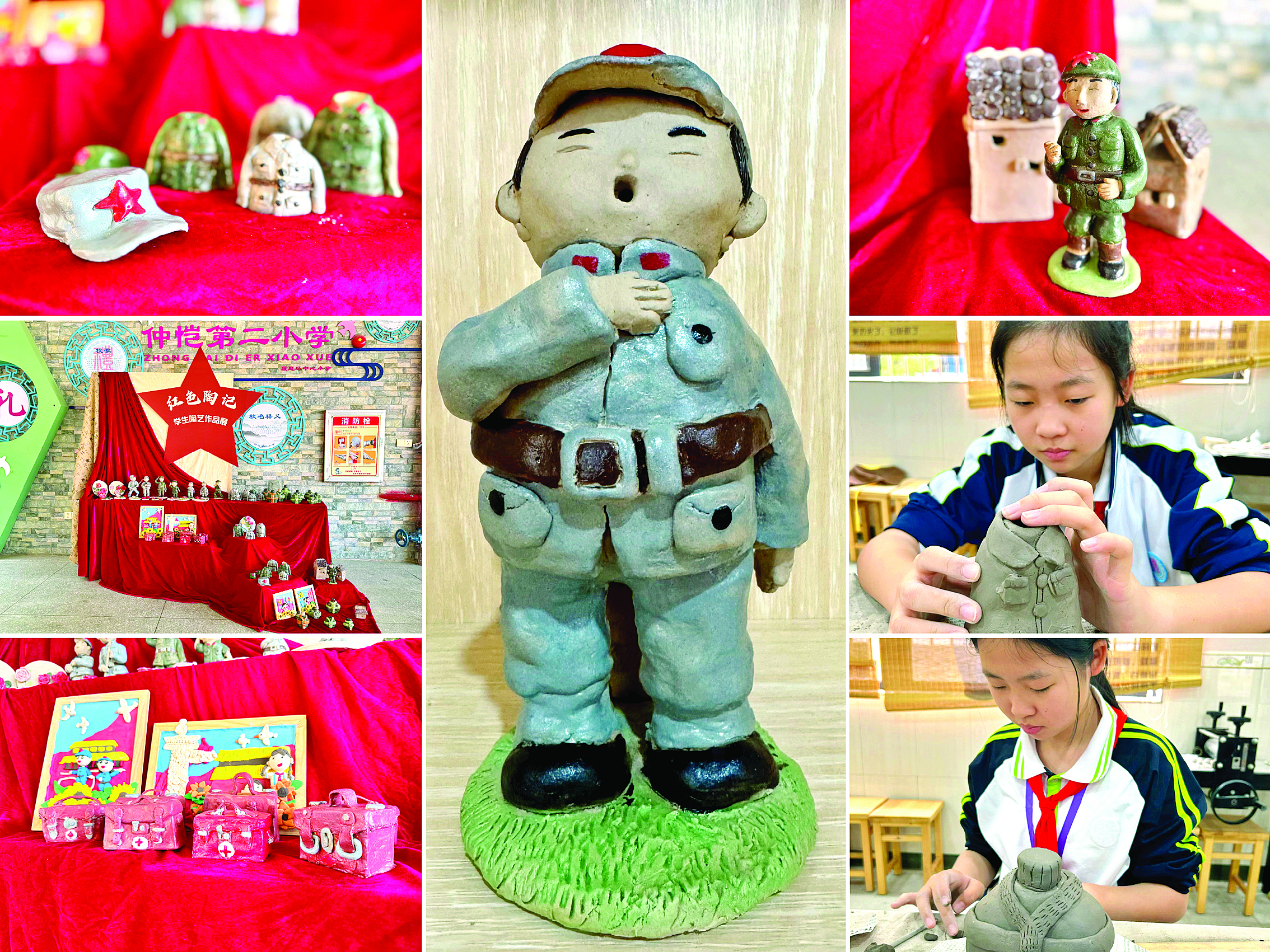 另一邊,“陶也”陶藝工作坊則以“溯源尋根,傳承民族精神”為內(nèi)核,構(gòu)建“以‘陶’生慧、以‘陶’促健、以‘陶’育美”的三維育人體系。從低年級玩泥塑形,到高年級創(chuàng)作《紅色記憶中的戰(zhàn)士》,每一件陶器都凝結(jié)著童真與家國情懷。更令人欣喜的是,學(xué)生親手捏塑的校吉祥物《禮娃》,已作為文化交流使者,走進(jìn)香港、西藏、貴州等地學(xué)校,架起粵港藏黔美育協(xié)作的橋梁。該工作坊榮獲惠州市中小學(xué)生藝術(shù)展演二等獎,教師團(tuán)隊(duì)發(fā)表10余篇獲獎?wù)撐,《以陶藝為筆,繪就美育新畫卷》更斬獲2025年惠州市大中小幼美育案例一等獎。