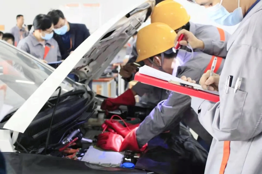 汽車工程學(xué)院的學(xué)生在上實(shí)操課。